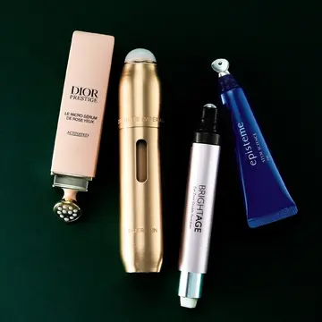 付属のマッサージャーにも工夫を凝らし、高機能ぶりを競い合うコスメたちは、目を開くための心強い味方になるはず。