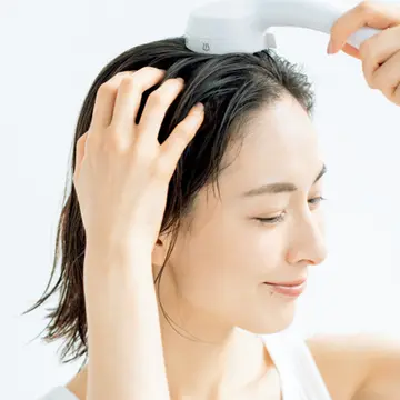 「毎日のシャンプー時に頭皮をほぐします。マッサージャーを使うと、ベストな強さで硬くなりやすい側頭筋をほぐせます。肩や首にも使えるので、頭まわりのコリ解消ケアが一気にできますよ」
