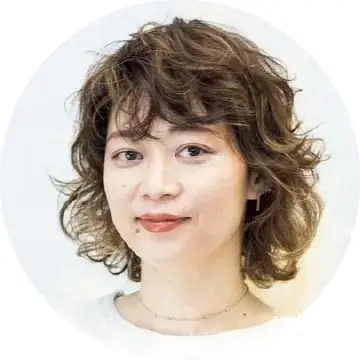 やわらかいくせ毛を引き立てるよう、透け感と透明感のあるアッシュ系に。表面と内側で濃淡をつけ、奥行きが出るように調整。髪を結んでも素敵に。