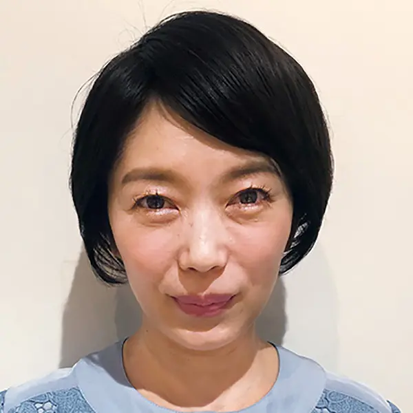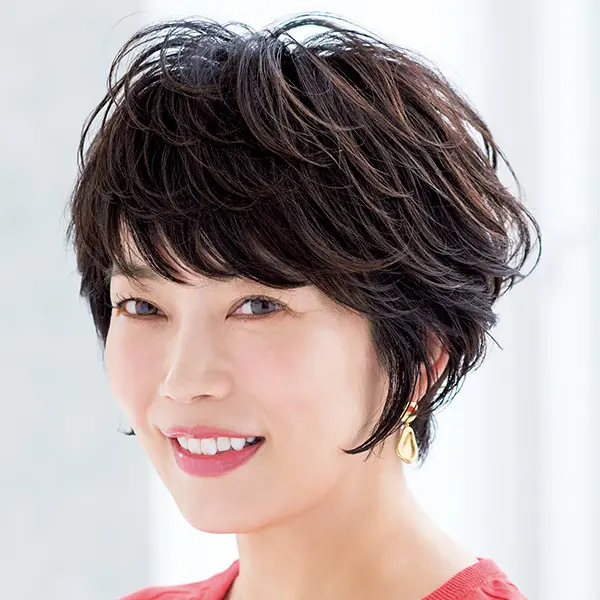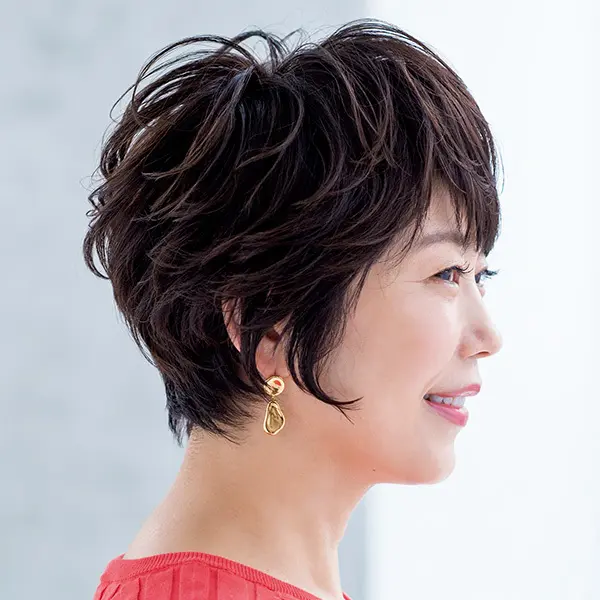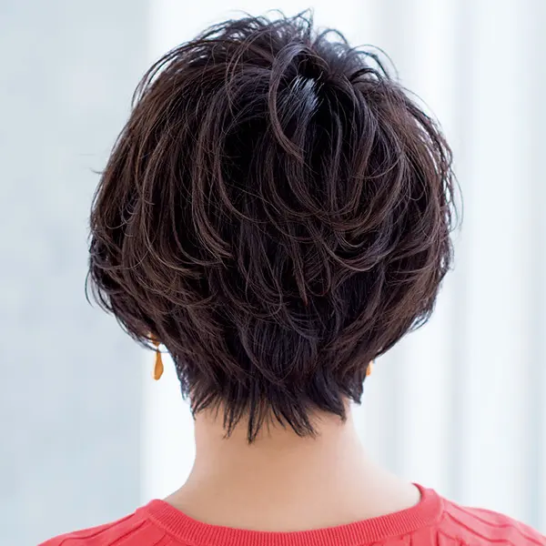 ストレートのままだと硬く、動きがでにくい髪質は、カット×パーマでやわらかな動きを仕込むのがカギ! テクニック満載のカットとハーフカールのゆるいパーマでつくる、ふんわりとした短めショート。