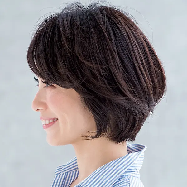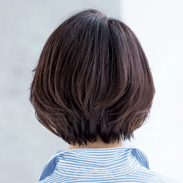 「後ろの毛量は多いのに、前髪含めフロントは寂しくなってきた」……そんなアラフィー女性には、面を強調したアラフィーカットがおすすめ! 前髪を含め全体にボディパーマをかけ、自然なふんわり感を演出。