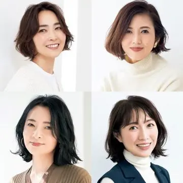ハチ上のみにレイヤーを仕込んだひし形バランスのボブ。そこへコテでのリバース巻きでボリューム出しヘアが完成。大人は、顔と髪に空間をつくるようにカット&セットをするのがふんわり感と華やぎの成功のコツ。【担当/タダモトイサオさん(SUNVALLEY) モデル/杉浦さや香さん(45歳・フリーランス)】