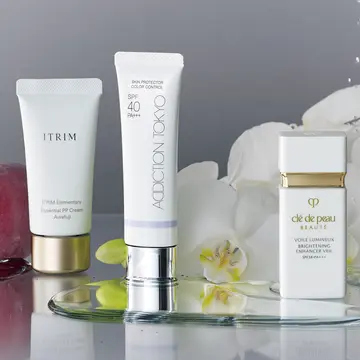 “くすみを払うなら断然ピンク下地! 50代は必携です。ファンデーションの下に仕込むことで、自然な血色感を演出でき、透明感がアップして、顔だちのメリハリもきわだちます。ポイントは、顔全体を同じ厚さでベタ塗りせず、強弱をつけながら塗ること。首から浮かず、自然に仕上がります。白(無色)の日焼け止めを顔全体に塗ったあとに下地をオン。”