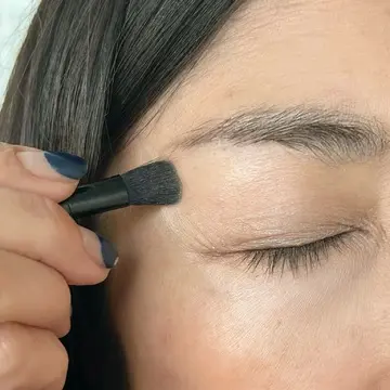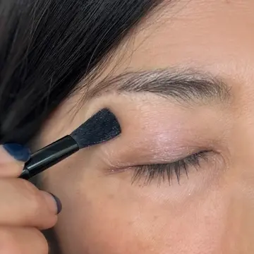 ①アイホール全体に、左上の明るいベージュをオン。ブラシでふわっと、ほんのり明るくなる程度でOK。