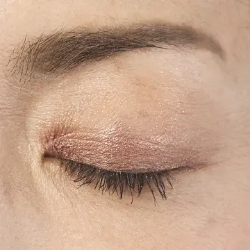“色のある影を仕込む”というユニークな発想で、まぶたに印象的な奥行き感を生み出す。軽やかな発色なのに深みを感じる、ムードのあるまなざしに。「偏光パールのきらめきがこの上なく上品。角度によってピンクのニュアンスが強まるので、いろいろな表情が楽しめそう」(根村さん)。