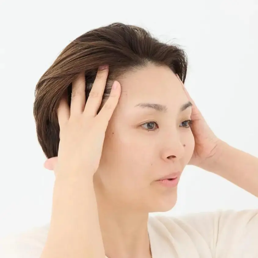 その後、こめかみに向かって楕円を描くように、指の腹でポンポンと軽く触るようにして、なじませます。