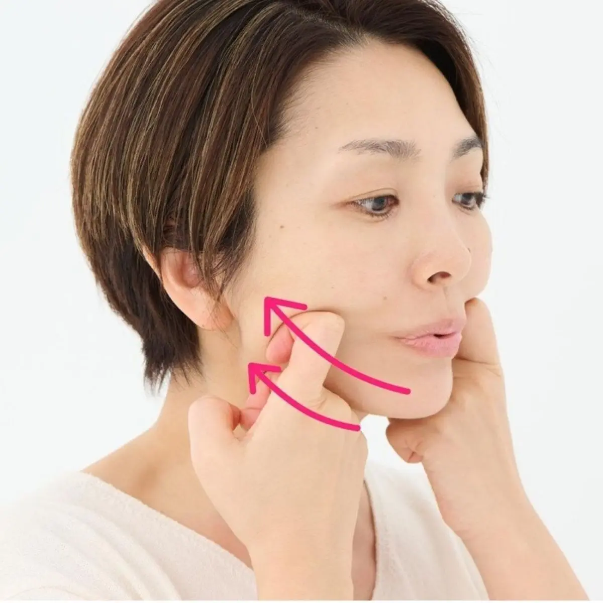 薬指に取り、頰骨の上、鼻筋、唇の下になじませます。