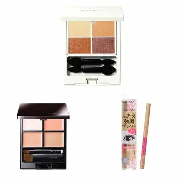 化粧水のあとは①のみで、手を汚したくないのでブラシを使い、②は少しずつ塗ります。くまはみずみずしいタイプ、シミは硬めのコンシーラーでカバー。お粉は華やかさ演出用なのでプライベートのお出かけ時に使います。