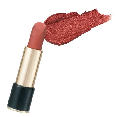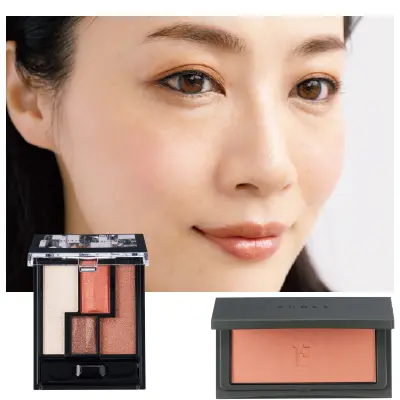 若い世代で今季大注目されているのがヌーディベージュ。でも、くすみがちな大人の肌にはちょっとハードルが高め。そこで、おすすめなのが、トーンを抑えたオレンジ系のリップ。「甘すぎず、辛すぎず、凛とした印象になります。オレンジ=ヘルシーというイメージがあるけれど、この秋はナチュラル使いするよりも、目もとを上品に盛って、きちんとしたソワレ感のある仕上がりにするのがおしゃれです」。