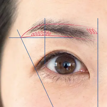 最初に描くのは、太さを出すポイントともなる眉の下側ラインから。眉頭から描くと不自然になりがちなので、眉中からスタート。眉山の下側までは、上昇角度7度(=ほぼ水平)で描く。