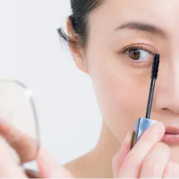 マスカラ選びのポイントの一番はカールアップ力に優れているもの。しっかり上向きまつ毛をキープできるものを。色は黒でくっきりと。ただし色白肌ならブラウンでもOK。