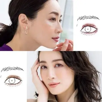 アイホールの目頭側に影色を入れた縦グラデ。目もとに深みとメリハリが出るので、腫れぼったく見えない大事なポイント!
