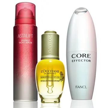 「肌にのせるとほどけるように溶け込み、潤いで満たされる感じ。ベタつかないので、夜だけでなく朝にも使いやすい。ツヤが生まれ、メイクのりもいいので、目覚めの朝はもちろん、夕方の肌の調子よさにその真価を感じた逸品」(副編K藤)。長く愛されているラインが、印象を左右する、ハリによるツヤ感を強化して進化。輝きあふれる肌へと導く。