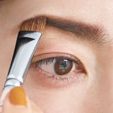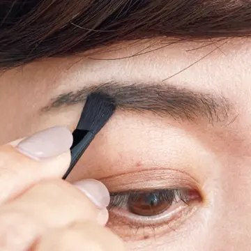 毛流れに逆らい、眉の根元から前へ掘り起こすようにつけるのがコツ。一本一本にコシが出て、若々しく。
