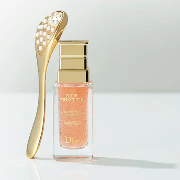 顔がひと回り小さくなったような引き締め感。たるみを立て直す24金入りクリームを、余すことなく肌に入れ込む。