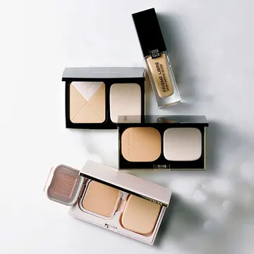 3.「シミをはじめ色ムラや、部分的なトラブルにはコンシーラー。肌を格上げ!」。目的や部位に合わせて選べる、異なる質感と色をセット。ピタッと密着し、肌に溶け込む透明感のある色が、自然な仕上がりをかなえる。