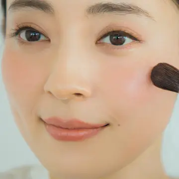 「実は、チークを入れる範囲しだいで、顔の長さをカットして見せることもできるんです。年齢とともに顔が間延びしてきたという人は、チークをやや幅広かつ横長に入れるのがおすすめ。鼻やあごの長さが気になる人も、淡いチークを横にすっと入れてみて」