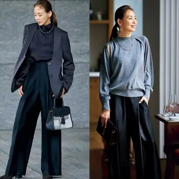 甘めのトップスも辛口のトップスも似合う黒パンツ。引き締め効果もあり、すっきり着こなすことができる。そんな黒パンツを使った、おしゃれな40代・50代読者モデル・華組&チームJマダムのコーディネートをご紹介。