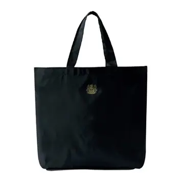 英国王室御用達ブランドの「アクアスキュータム」。今回のコラボトートにあしらったのは、ブランドの誇りであるクレスト(紋章)。控えめながら、ゴールドの輝きと相まって上品なアクセントに。コンパクトに携帯できるのに、収納量はたっぷり。さらにブラックカラーが大人の装いにすんなりなじみ、ショッピングはもちろん、オフィスシーンや旅にも活躍必至。