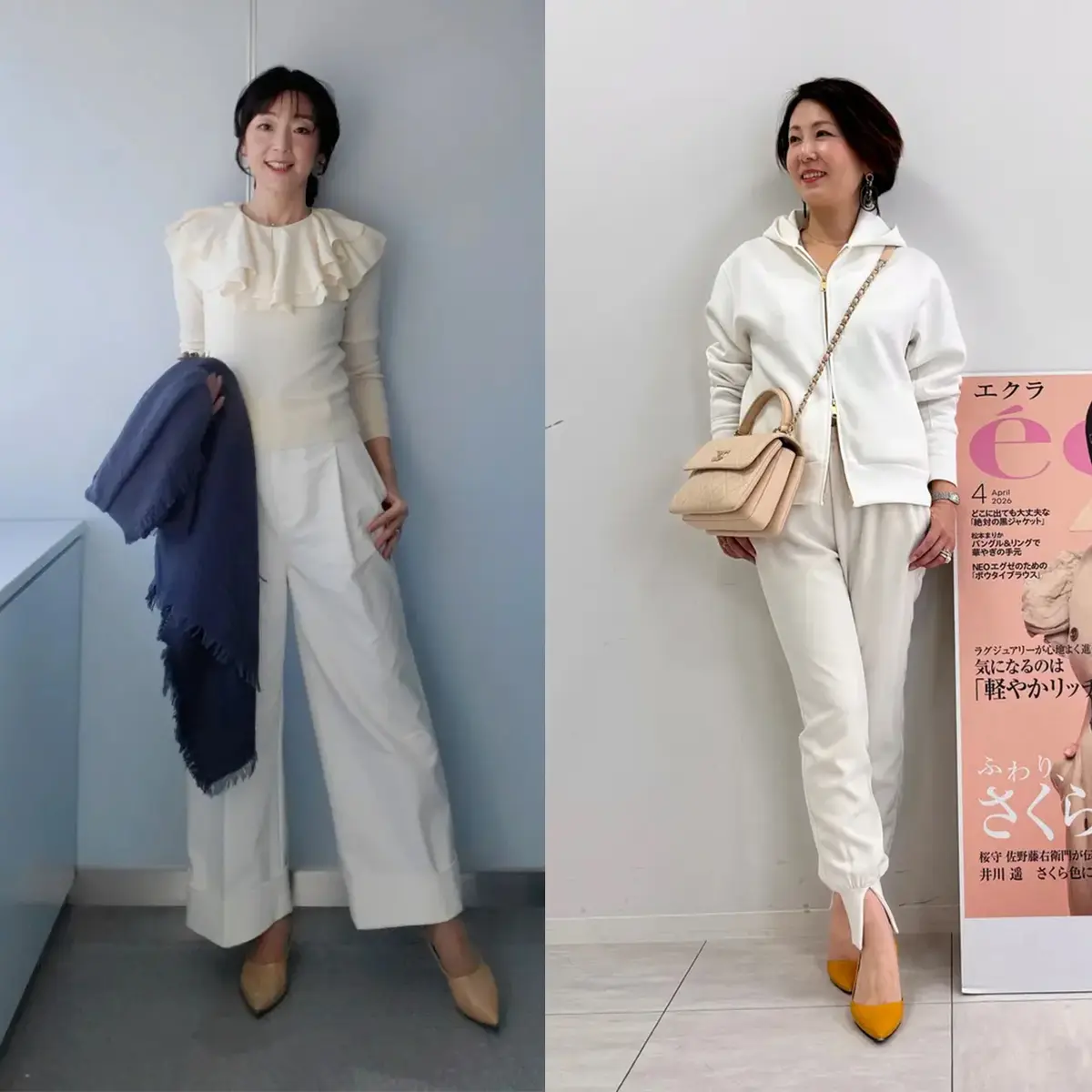 爽やかな雰囲気を演出できる白パンツ人気は春も健在。今回は、おしゃれが大好きな40代・50代の読者モデル エクラ華組とチームJマダムのブログから、春にふさわしい「白パンツ」を使ったコーデを紹介。