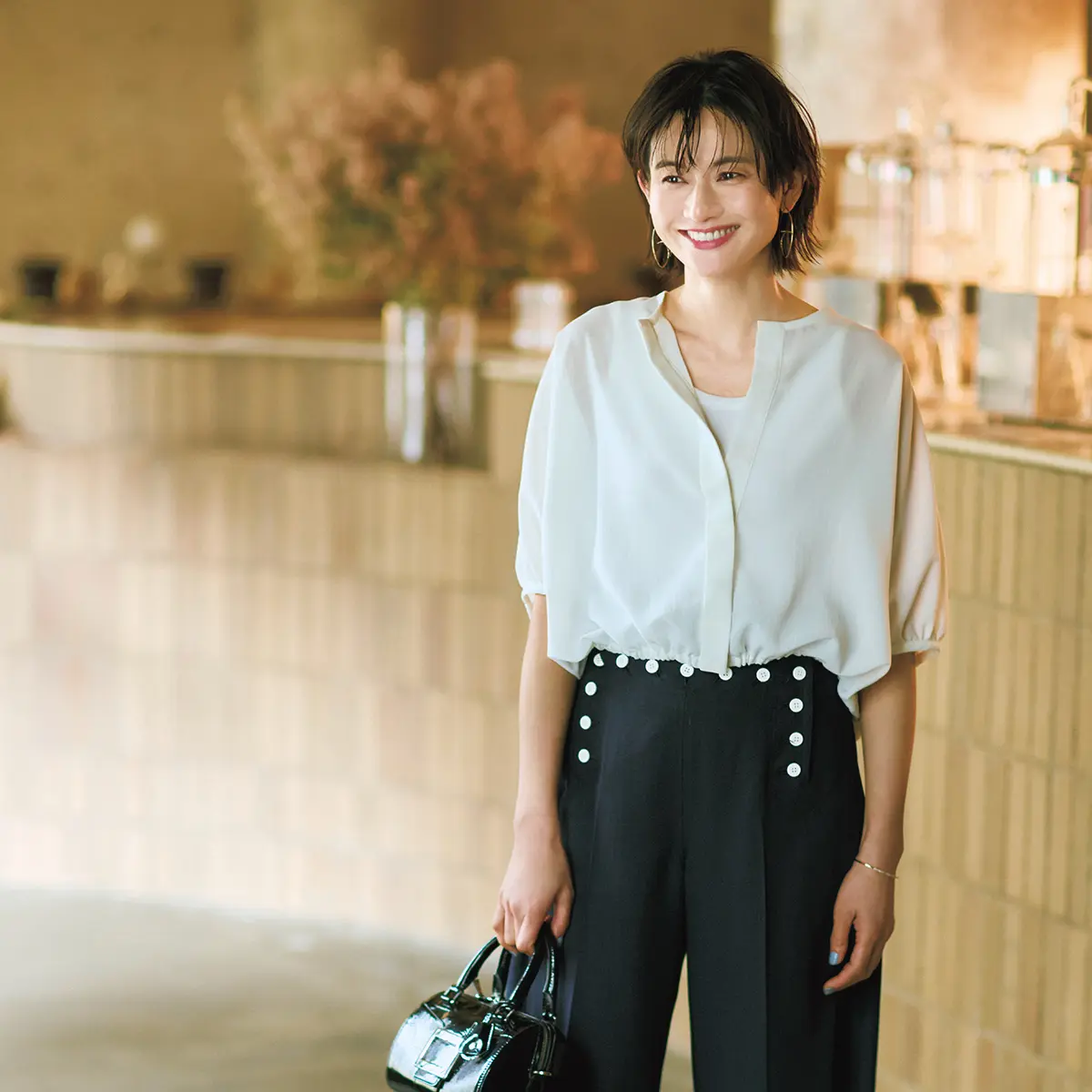 ブラウス/ZARA パンツ/TOMORROWLAND シューズ/UNITED ARROWS
