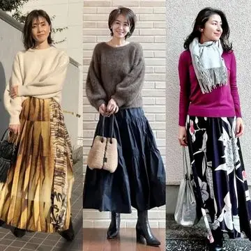 パンツ派の多かった’21年を一新する勢いで、存在感のある色、柄、デザインのスカートをさらりとはきこなす人が続出。