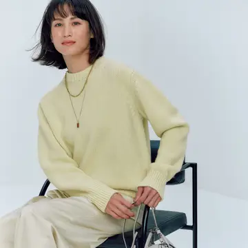 カーディガン¥36,300・ニット¥33,000/ウィム ガゼット 青山店(ウィム ガゼット) パンツ¥30,800/カオス丸の内(カオス) ベルト¥28,600(参考価格)/アマン(アトリエ アンボワーズ) ピアス¥19,800/ブランイリス トーキョー(ブランイリス) バッグ¥82,500/エリオポール代官山(ザンケッティ) 靴¥33,000/ベイジュ(ピッピシック)
