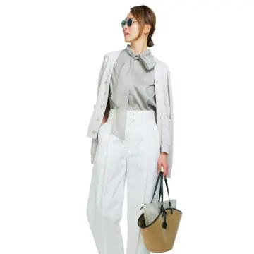 定番のツインニットは短め丈を選ぶことで、今っぽく新鮮なバランスに。ストンと落ちる縦ラインが美しいパンツと合わせれば、オフィスにも適したきれいめな印象に仕上がる。