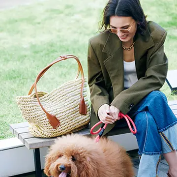 丸みを帯びたモダンなフォルムのかごバッグは、中央にあしらわれたロゴマークも素敵。アイコニックな小物をひとつ添えるだけで、いつものカジュアルコーデがリフレッシュできる。