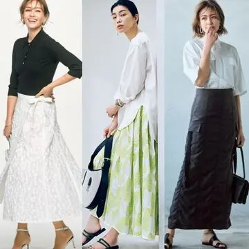歩くたびに、ふわっと広がるエアリーな質感がビビッドなオレンジを優しげに見せてくれるスカート。白のデニムジャケットやナチュラルなかごバッグと合わせて鮮やかカラーを軽やかに着こなすのが、初夏のムードにぴったり。