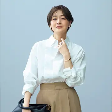 安心感のあるロング丈のシャツはドラマティックに裾が揺れるシルエットで、体型カバーしながらモードな着こなしを実現。ストレッチが効いて、はき心地抜群なレギンスパンツとの合わせも、スタイリッシュな雰囲気に。