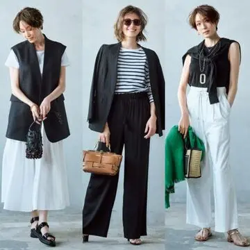 白のジャカードスカートのロマンティックさを、体にほどよくフィットする黒のポロニットで都会的なスタイルに落とし込んで。夏らしい爽やかさのある華やかなコーディネートに仕上がる。