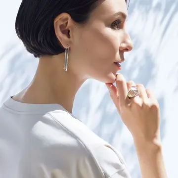 ピアス¥41,800/ブランイリス トーキョー(ブランイリス) シャツ¥61,600・パンツ¥64,900/ドゥロワー 二子玉川店(ドゥロワー)
