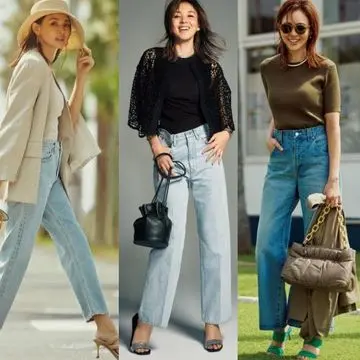 黒トップス×白パンツの普遍的な組み合わせも、ひとさじグレーを加えたオイスターホワイトのデニムを選ぶと、カジュアルさによる抜け感と色のニュアンスから大人の気配が感じられ、よりこなれた印象に。