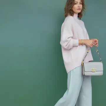 大人のかわいげを象徴する人気のペールピンクは、色合わせで新鮮な着こなしに。この秋のトレンドカラーブラウンと合わせることで、鮮度の高いコーディネートが完成。さらっと気流すスカートの抜け感で、女っぽさのなかにほどよいラフさを加えるのもおしゃれ。