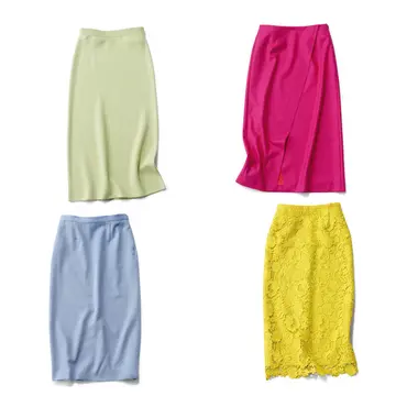シルク調のしなやかで落ち感が美しいバックサテンジョーゼットのライトグレーパンツは、ウエスト位置を下げてはくローライズタイプ。ゆるいシルエットのピンクニットと合わせた、カジュアルさがあるコーディネートには、きれいめな小物を合わせて女らしいツヤを加えると好バランス。