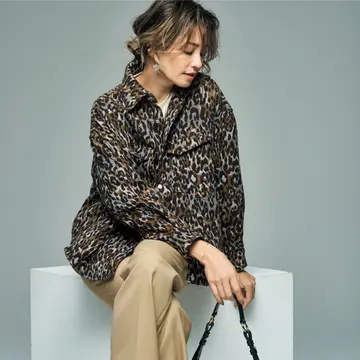 個性の強いレオパード柄も、モノトーン配色ならすっきり。さらにIラインシルエットで女らしさを醸すスカートで取り入れることで、洗練された華やかさのある着こなしに仕上がる。