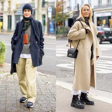 無造作に羽織る着こなしがこなれて見える、ゆったりシルエットのベージュコート。すその広がりが優美な黒ワンピースとの組み合わせなら、マニッシュな雰囲気に振り過ぎることなく、今っぽいかっこよさが手に入る。