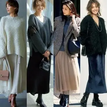 冷んやりした冬の空気に溶け込むミントとグレーの配色で、洗練されたムードを演出。ニットのふんわり感やタックスカートの揺れるニュアンスで柔らかさを足すと、女性らしい甘さも感じられる。