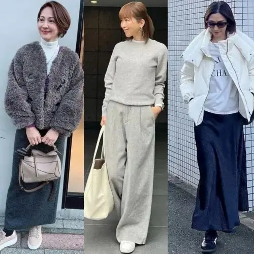 履き心地もよく、コーデのアクセントにもなるボリューミーなソールのスニーカー。スタイリッシュなグレーなら、カジュアルコーデも大人らしい洗練された雰囲気になる。