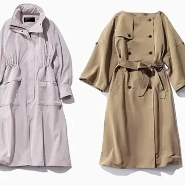シンプルなニットとパンツのブラックコーデの上から、ベージュのコートをはおる。ベーシックカラーのみを使ったスタイリングも、デザイン性のあるスプリングコートのおかげで、ぐっと春めいた印象に。