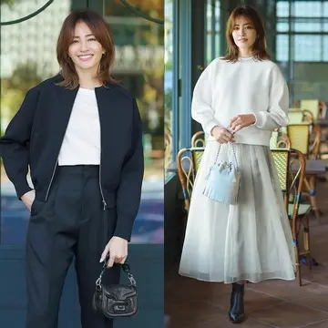 スウェット素材のトップスは裾から甘いフレアがのぞき、黒デニムは裾をカットオフした辛口なディテールに。白×黒のシンプルなワンツーコーデも、さりげなく甘さと辛さの両方を効かせることで、今っぽい洒落感が手に入る。