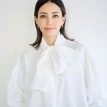 ブラウス¥85,800/オールド イングランド銀座店(オールド イングランド) ニット¥28,600/ザ ショップ スローン 新静岡セノバ店(スローン) パンツ¥34,100/カオス丸の内(カオス) ピアス¥34,100/エルディスト(バー ジュエリー) バッグ¥104,500/八木通商(ザンケッティ)