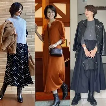 親戚との新年の食事会には、コンサバティブなブラックドレスが適任。重く見えがちなすとんとしたロング丈には、白やシルバーといった明るいカラーの小物を添えて軽やかなアクセントを加えるとバランスよく着こなせる。