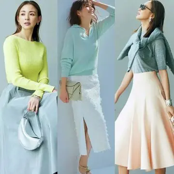 ポロシャツとドローストリングデザインのスカートというスポーティさを感じさせるアイテム同士の組み合わせも、フェミニンな配色にすることで大人らしい洗練された印象に仕上がる。バッグや靴はきちんと感のあるデザインをチョイスすることで上品さもアップ!