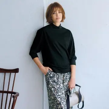 どこかレトロ感のあるモチーフと配色で、ふんわりシルエットでも甘くなりすぎない花柄ブラウス。デニムなどのカジュアルボトムと合わせて甘さを引き算するとちょうどいい。