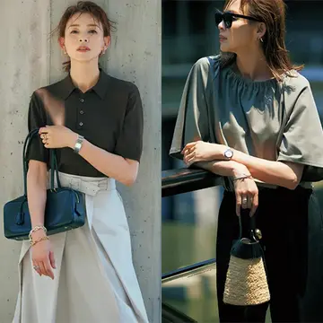 「ワンツーの構成は、先にトレンドありきではなく『ベーシック服』を軸にするほうがスマートです。上下のどちらかは着慣れた定番アイテムを活用、そこに加えるもう一枚で、夏後半の着映えに有効な華やかさやリュクスを足してみましょう。『シンプル×ラグジュアリー』の上品なバランスは心地いい涼感を誘い、そこに着る人の知性も映るものだと思います」