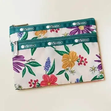 毎年楽しみにしているレスポートサック×エクラのコラボポーチ♪旅に出かける時、必ず持って行くほど重宝しています。手描き風の色彩豊かなフラワープリントが、大人可愛くてツボです。