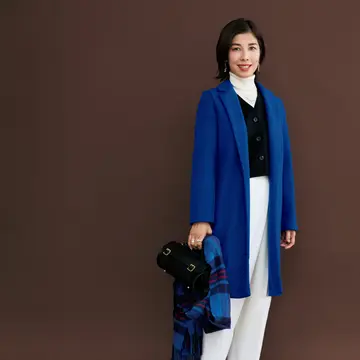 冬になると着たくなるロイヤルブルー。黒×白でマニッシュに