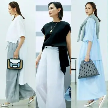 シンプルで上質なアイテムをベースに、気負わず着こなす大人のエレガントなカジュアルスタイル。大人の余裕を感じさせるコーディネートで、くつろぎながらも洗練された印象に。